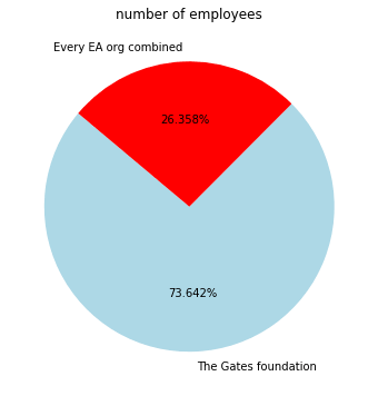 A post from 2021 (before the FTX crash) estimated there were about 650 people employed in EA orgs. The Gates foundation has 1818 employees: