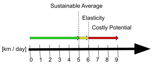 There seems to be an elastic range above my average that doesn't affect my total weekly kms (35 km total (7 days x 5 km per day)) as long as I include the elasticity in my planning over the next few days. Say, if I go 6 km on day 1, I can do 4.5 km and 4.5 km on day 2 and 3.