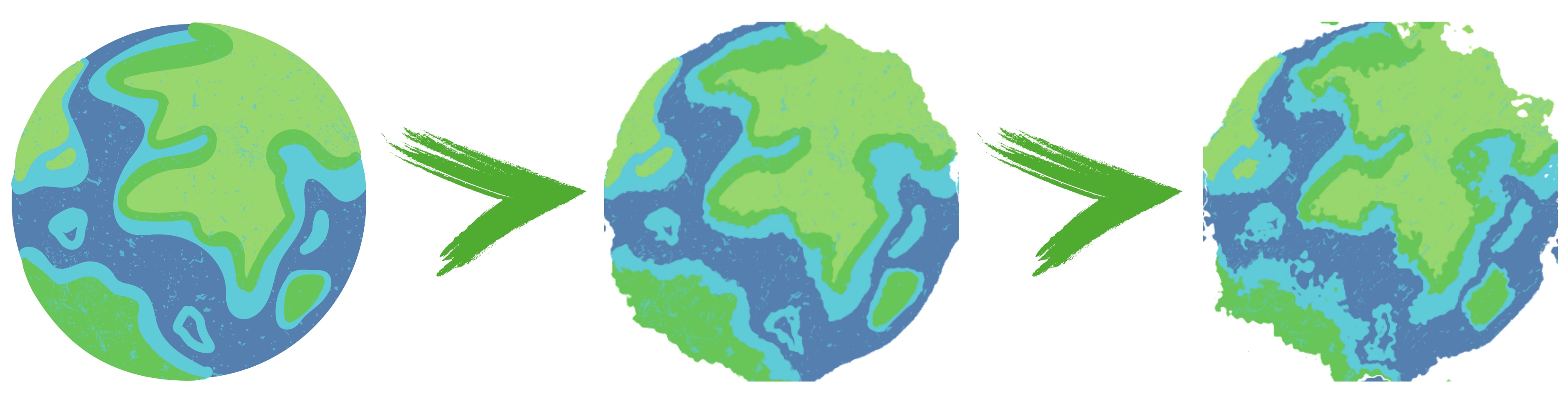 Of course, the planet distortion in the previous images tells you which world state is preferable. This representation is an extremely crude simplification. Things become less obvious if you would choose a slightly different world state representation (WSR). In the figure below, we will go briefly through the transformation steps.
